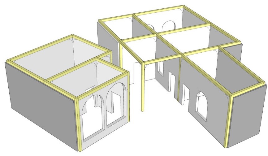 墻體采用自攻螺釘將水泥纖維板固定在方鋼管墻架上,外刷黃色真石漆,插座管線可埋設于墻體內,整潔美觀。外陽臺連通臥室,滿足采光和通風、晾曬衣物。觀景露臺,提供休閑娛樂場所,觀看驪山美景,擺放綠植等。窗戶采用雙層中空玻璃,達到更好的保溫隔熱、隔聲效果。